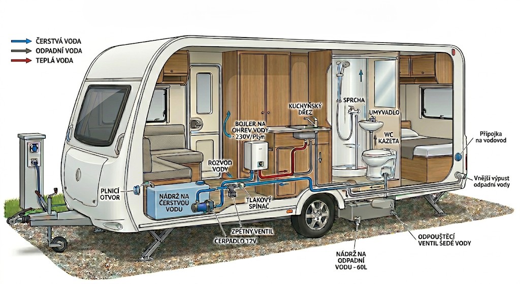 Cestování v karavanu nebo obytném autě je potěšení. Aby však se toto potěšení nezměnilo v nepříjemné hledání nejbližší nemocnice kvůli střevním potížím, je potřeba věnovat pozornost tomu, co vám teče z kohoutku. Voda v nádržích totiž degraduje a v létě až neuvěřitelně rychle.