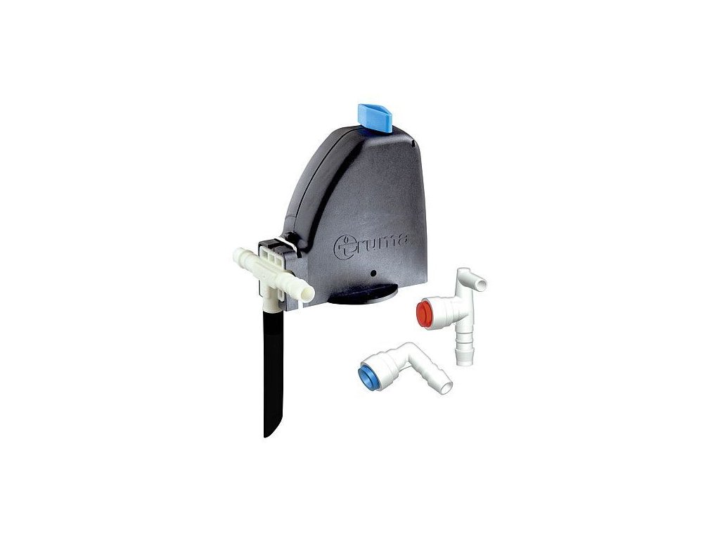 Vypouštěcí ventil FrostControl a úhlové konektory pro vodní hadice Ø 10 mm.